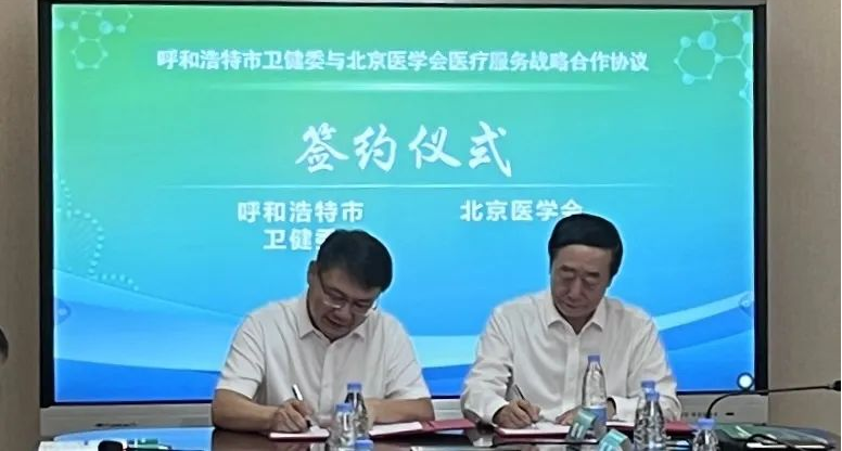 随后,呼和浩特市卫生健康委员会主任马可为、北京医学会会长封国生,分别代表呼市卫健委和北京医学会,签订医疗服务战略合作协议,开启了新一轮的医疗战略合作。